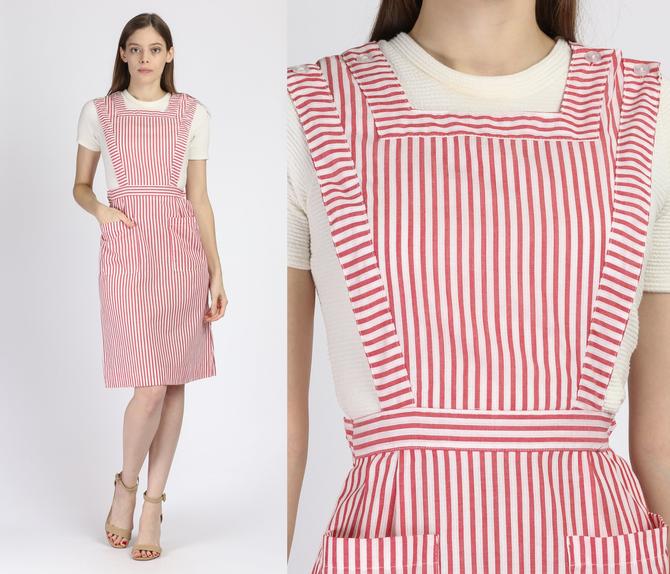 Vintage Pink Red And White Candy Striper Pinafore Dress Small 1970s Candy Striper Candy Striper Dress Pinafore Dress